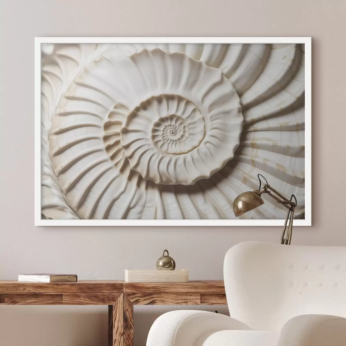 Plakat Valge spiraalne kest, mis näitab oma keerulist ja üksikasjalikku mustrit f41728