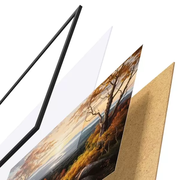 Plakat koosneb raamist, pleksiklaasist, trükitud pildist ja puitlaastplaadist alusplaadist. Tänu tagaküljel olevatele kinnitustele saab plakati kohe seinale riputada.