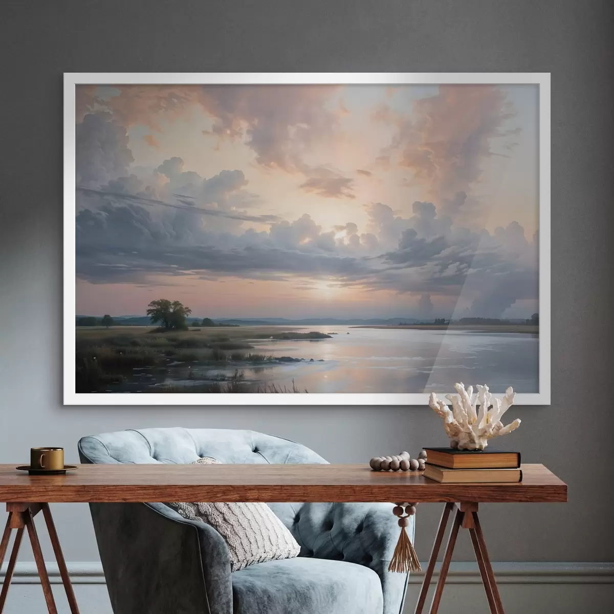 Poster Rahulik pastellvärviline maastik, kus rahulik järv peegeldab värvilist taevast päikeseloojangul Nr f41734
