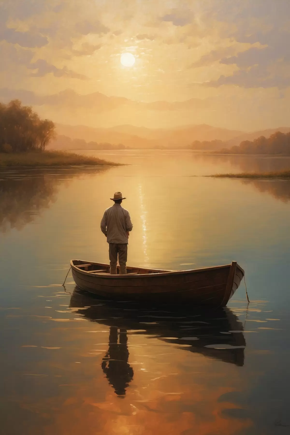 Poster Mees paadiga keset järve Nr f41770