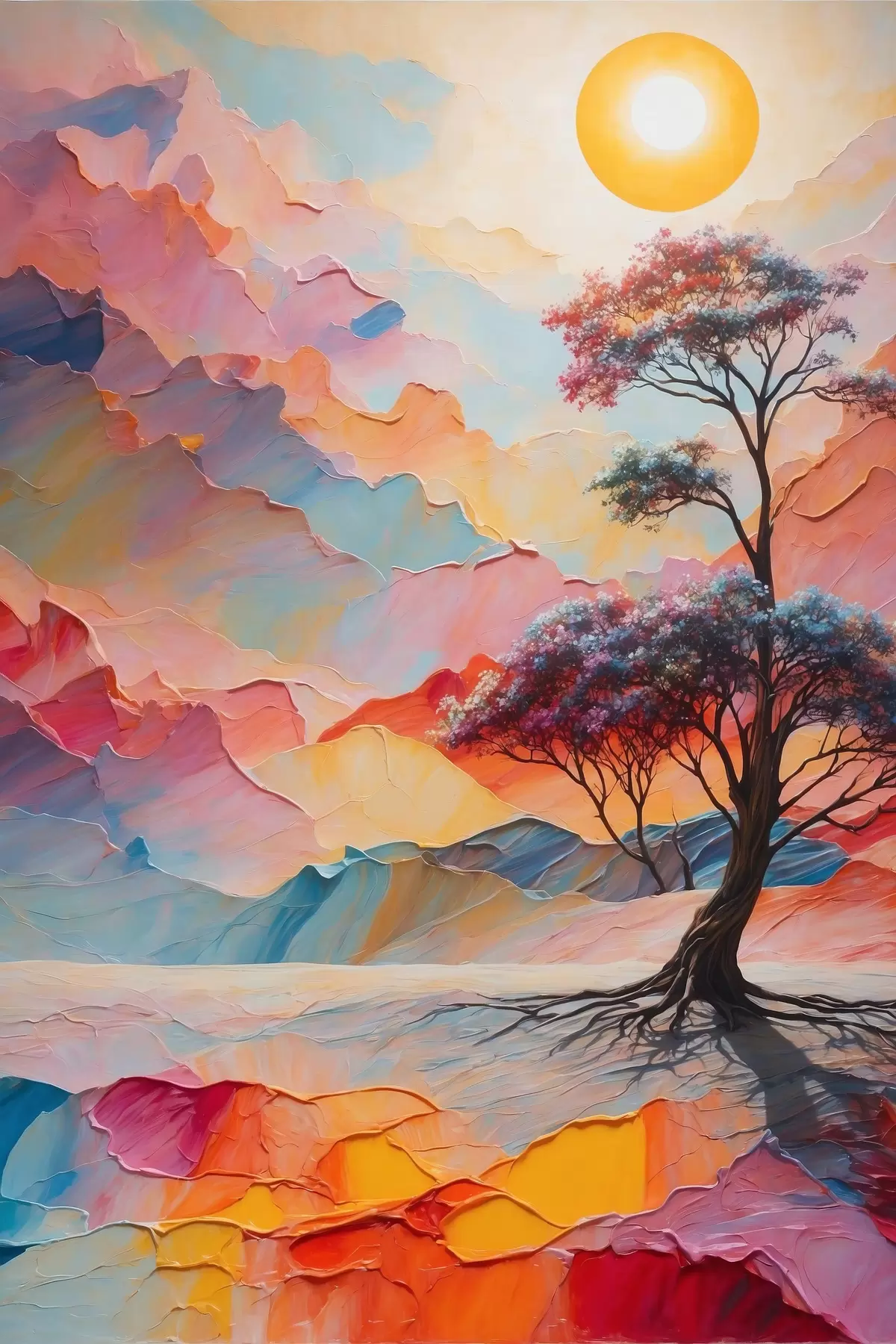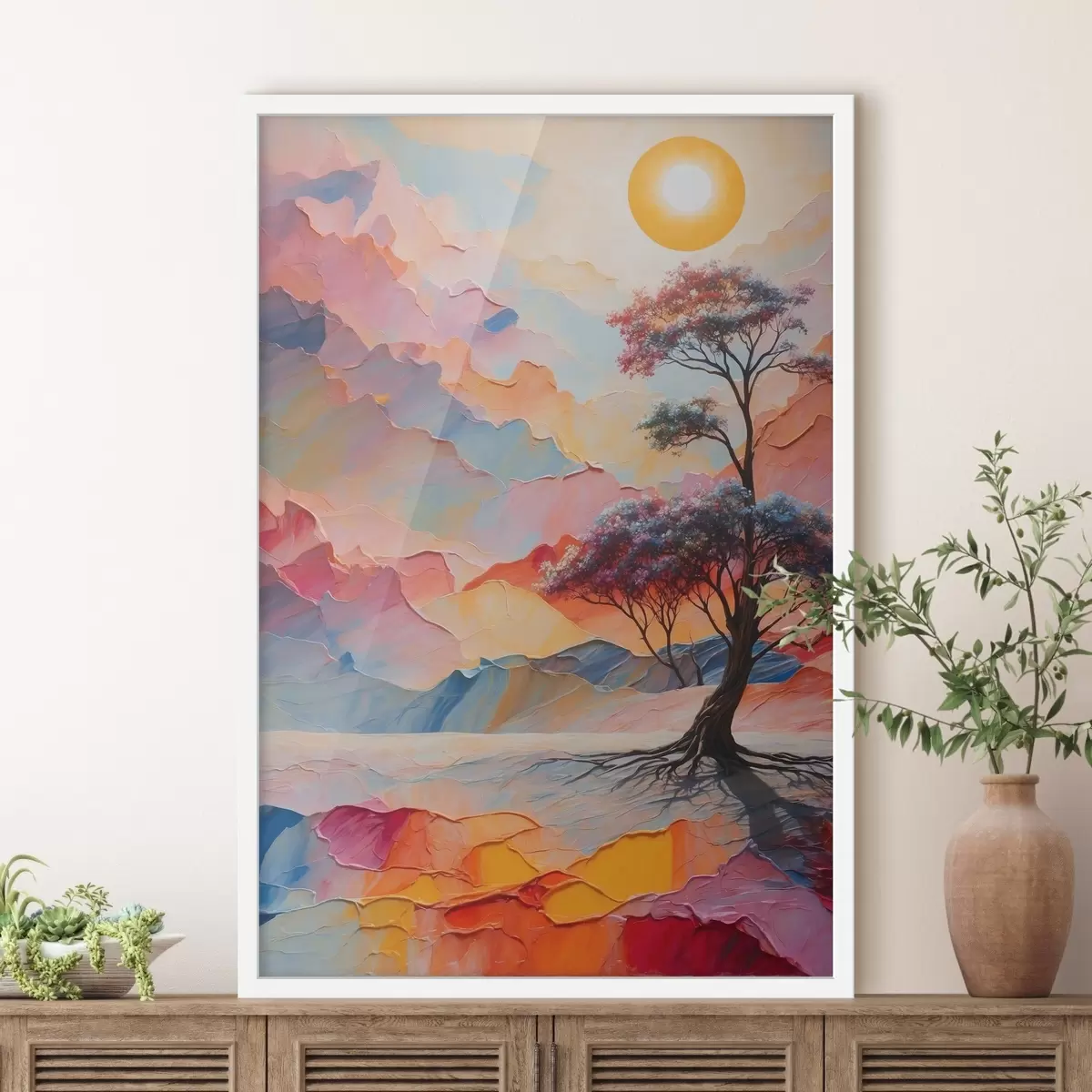 Poster Puu ja päike abstraktsel taustal akrüülstiilis Nr f41771