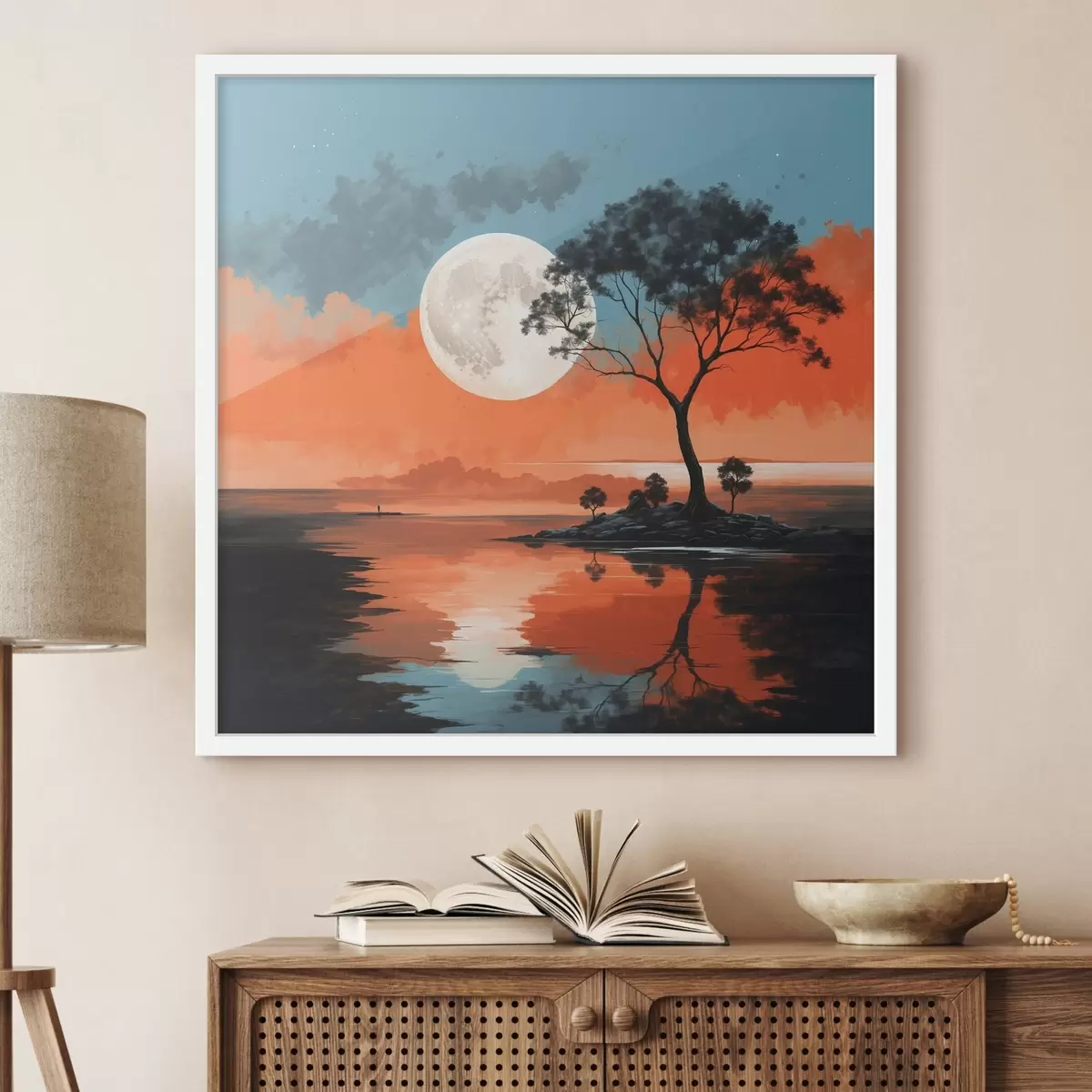 Plakat Puu keset järve taustal kuu taustal f41775