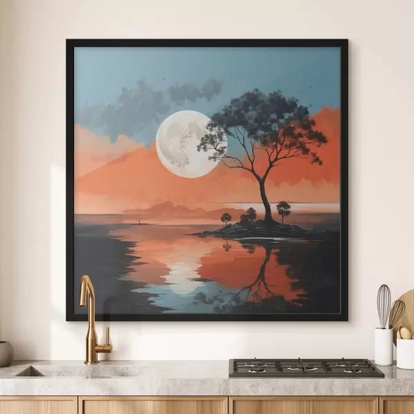 Poster Puu keset järve taustal kuu taustal Nr f41775