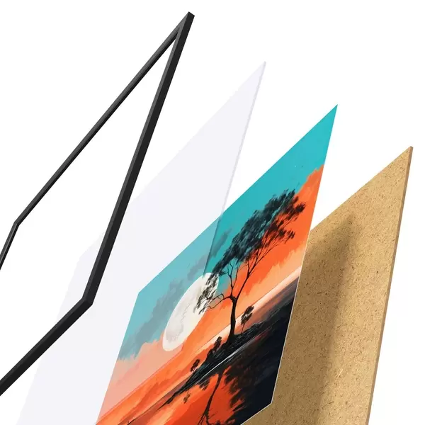 Plakat koosneb raamist, pleksiklaasist, trükitud pildist ja puitlaastplaadist alusplaadist. Tänu tagaküljel olevatele kinnitustele saab plakati kohe seinale riputada.