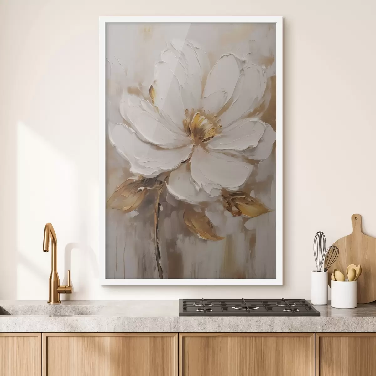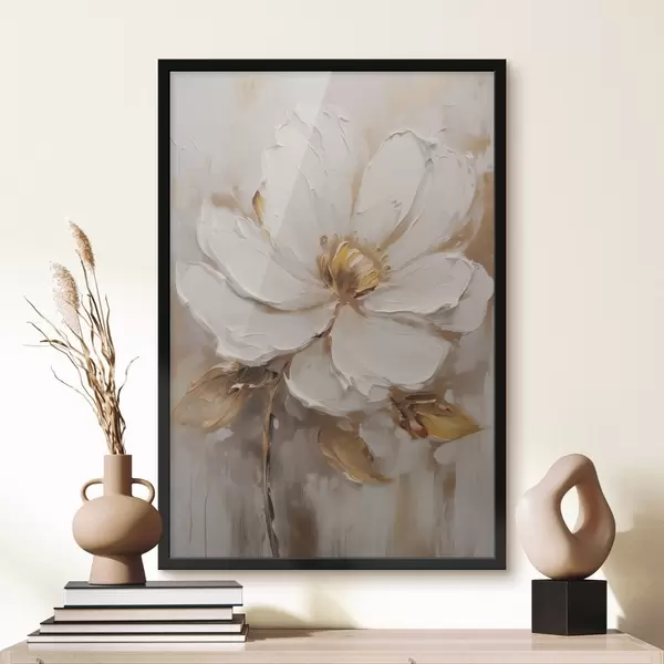Poster Valge lill kollaste toonidega tekstuurilisel taustal Nr f41820