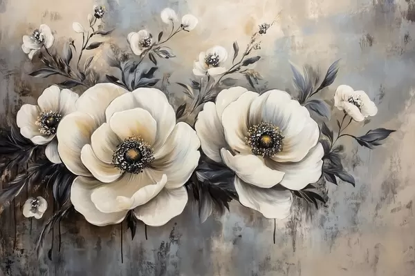 Plakat Valge lillede haru vintage stiilis f41828