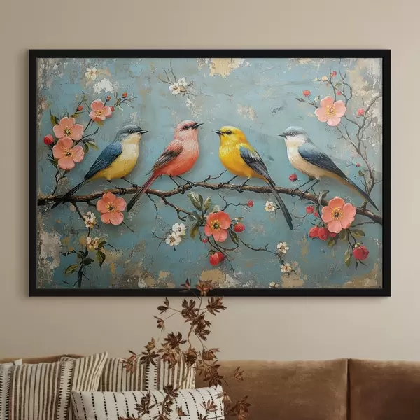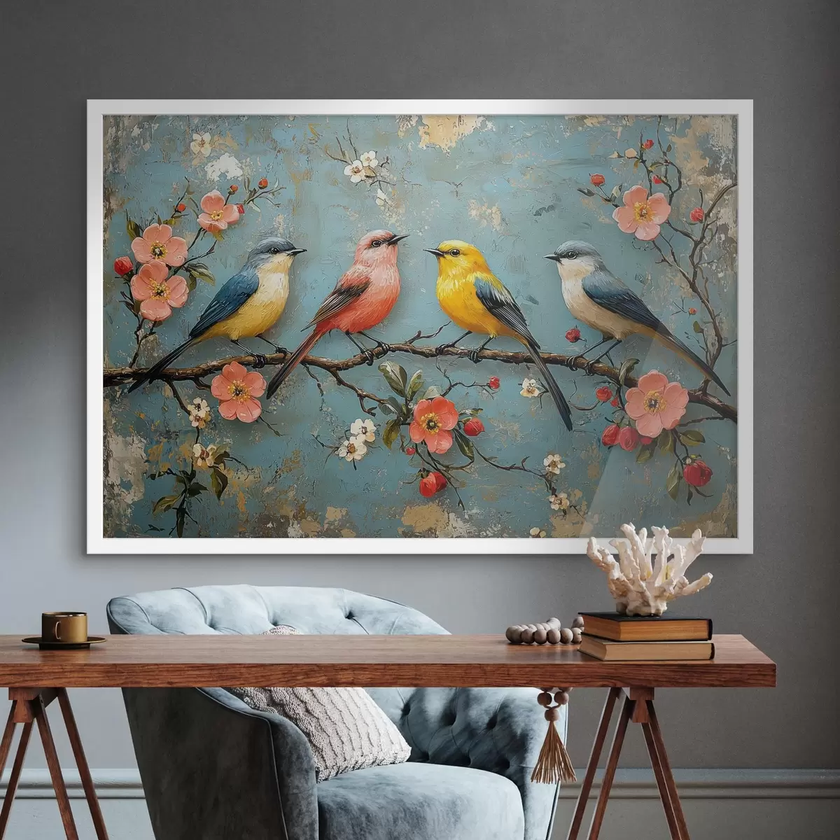Poster Linnud sakura oksal õlimaali stiilis Nr f41834