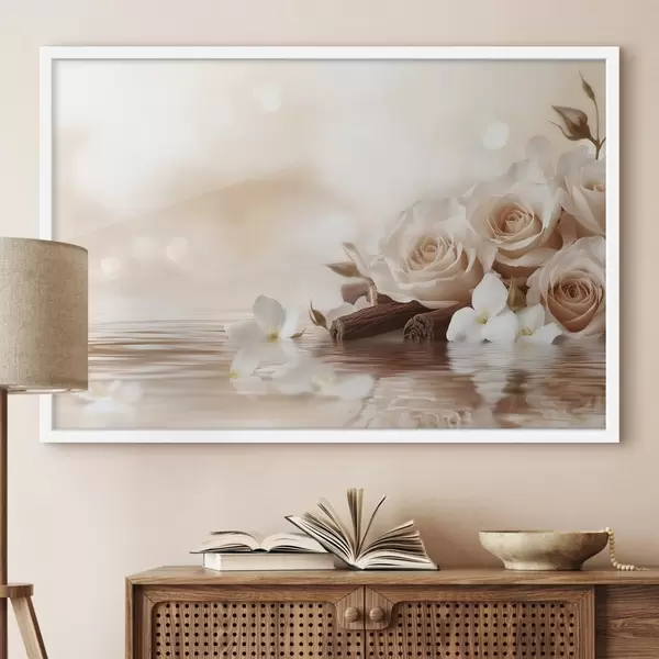 Poster Õrnad beežid roosid mere ääres Nr f41877