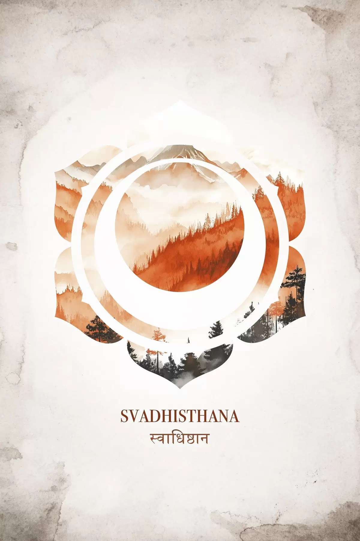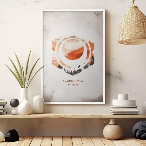 Poster Svadhisthana tšakra, oranž tšakra, esoteerika, meditatsioon, budism, akvarellstiilis mäed Nr f41881