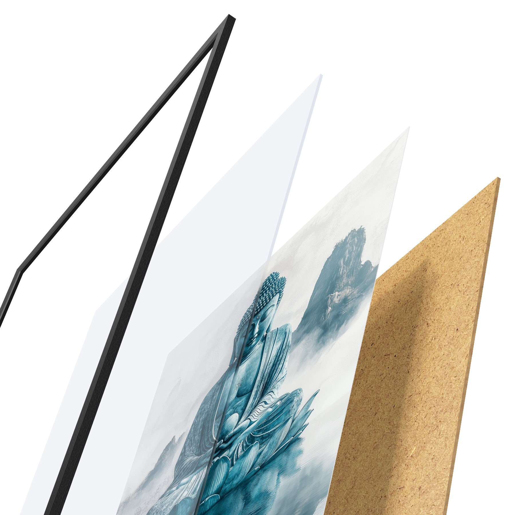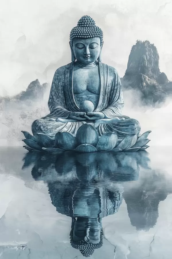 Poster Buddha kuju, idamaine stiil, buddhism, mäed, järv, meditatsioon, spirituaalne Nr f41890
