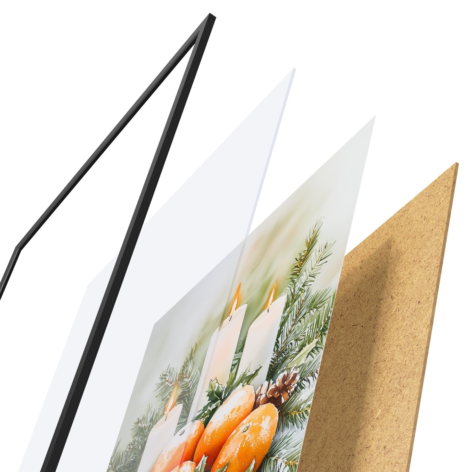 Plakat Jõulukaunistus küünalde, männi, käbide ja apelsinidega, akvarellstiilis f41951