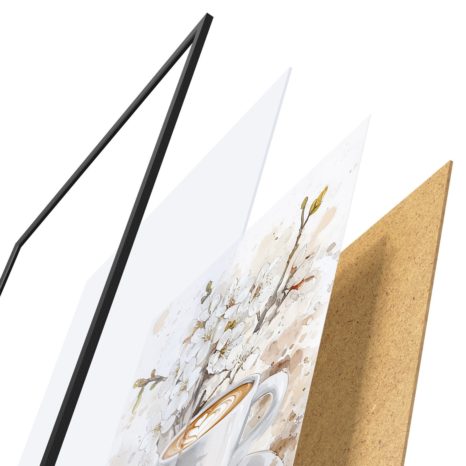 Plakat Kaunis tass kohvi, jasmiinililled, makroonid, pehmed akvarellvärvid f41964