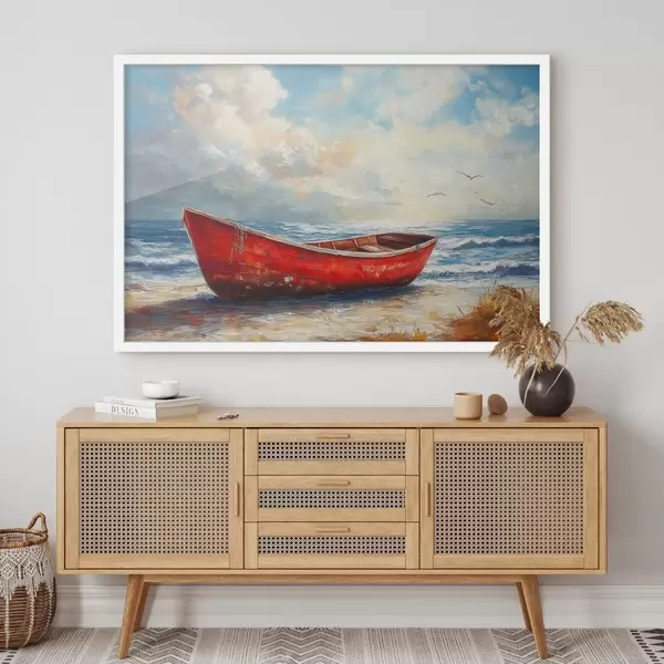 Plakat punane paat mere ääres õlivärvi stiilis f42009