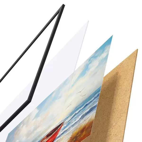 Plakat koosneb raamist, pleksiklaasist, trükitud pildist ja puitlaastplaadist alusplaadist. Tänu tagaküljel olevatele kinnitustele saab plakati kohe seinale riputada.