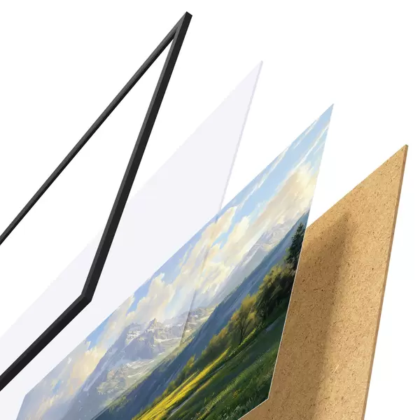 Plakat koosneb raamist, pleksiklaasist, trükitud pildist ja puitlaastplaadist alusplaadist. Tänu tagaküljel olevatele kinnitustele saab plakati kohe seinale riputada.