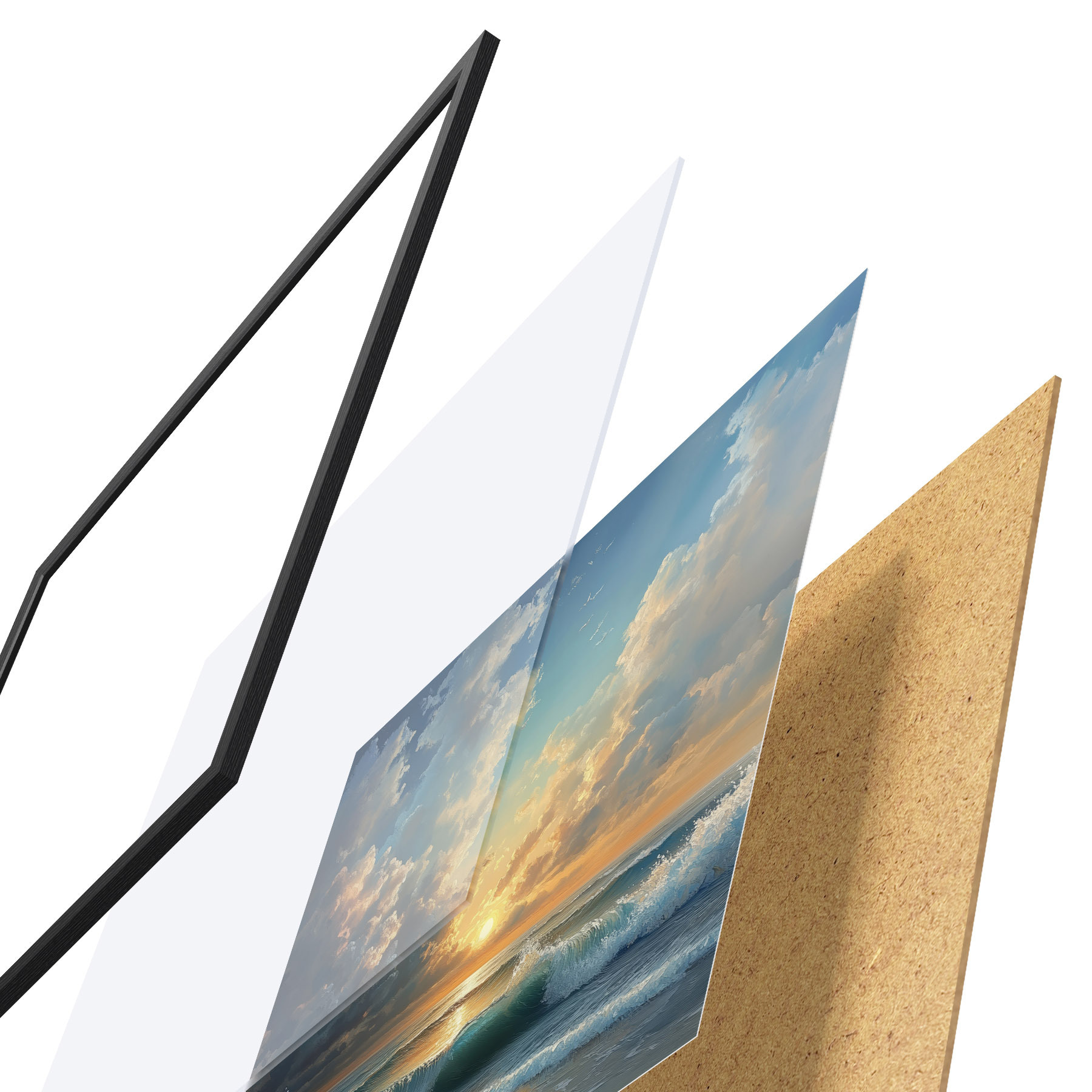 Plakat koosneb raamist, pleksiklaasist, trükitud pildist ja puitlaastplaadist alusplaadist. Tänu tagaküljel olevatele kinnitustele saab plakati kohe seinale riputada.