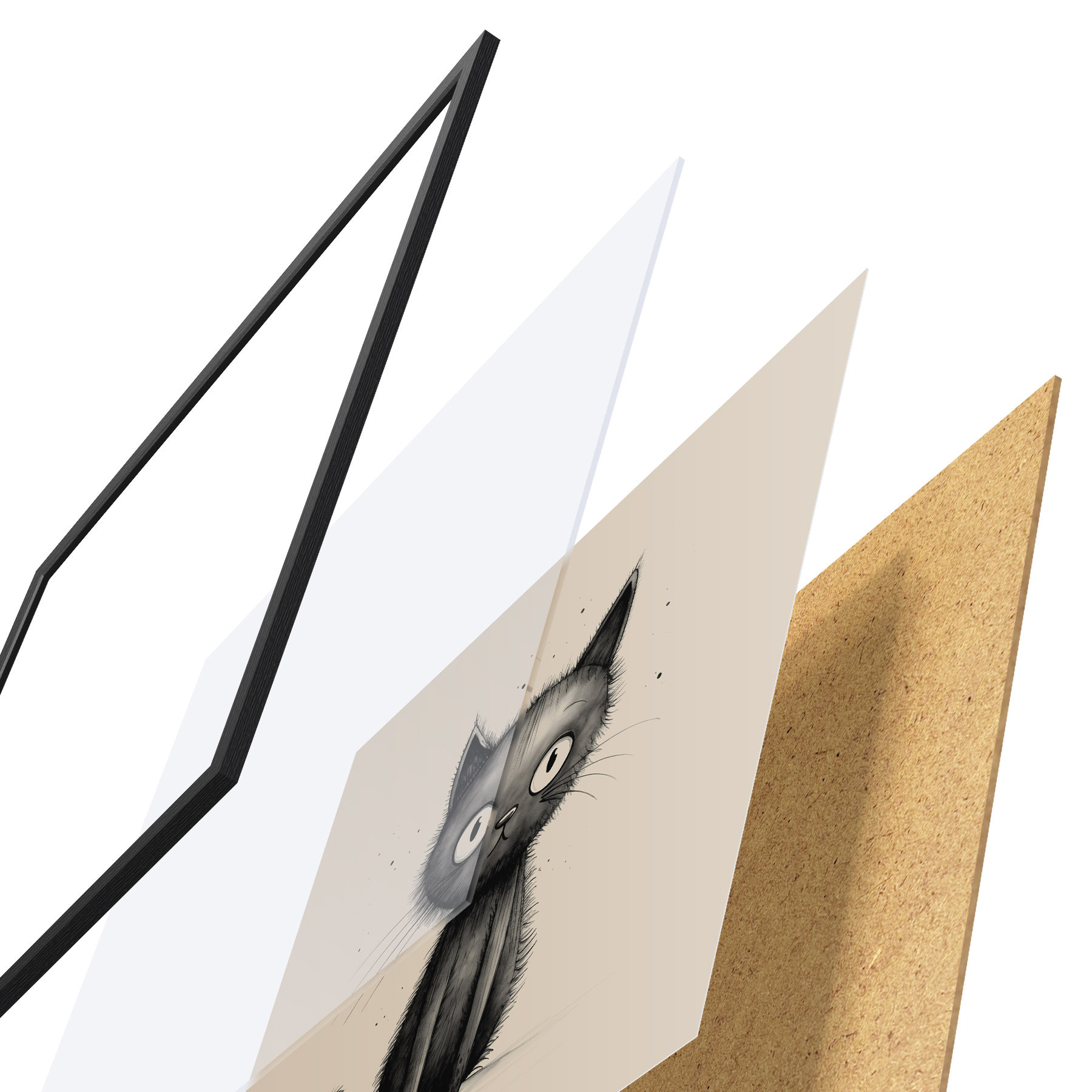 Plakat koosneb raamist, pleksiklaasist, trükitud pildist ja puitlaastplaadist alusplaadist. Tänu tagaküljel olevatele kinnitustele saab plakati kohe seinale riputada.