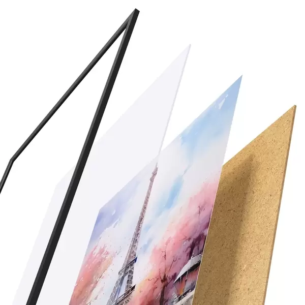 Plakat koosneb raamist, pleksiklaasist, trükitud pildist ja puitlaastplaadist alusplaadist. Tänu tagaküljel olevatele kinnitustele saab plakati kohe seinale riputada.