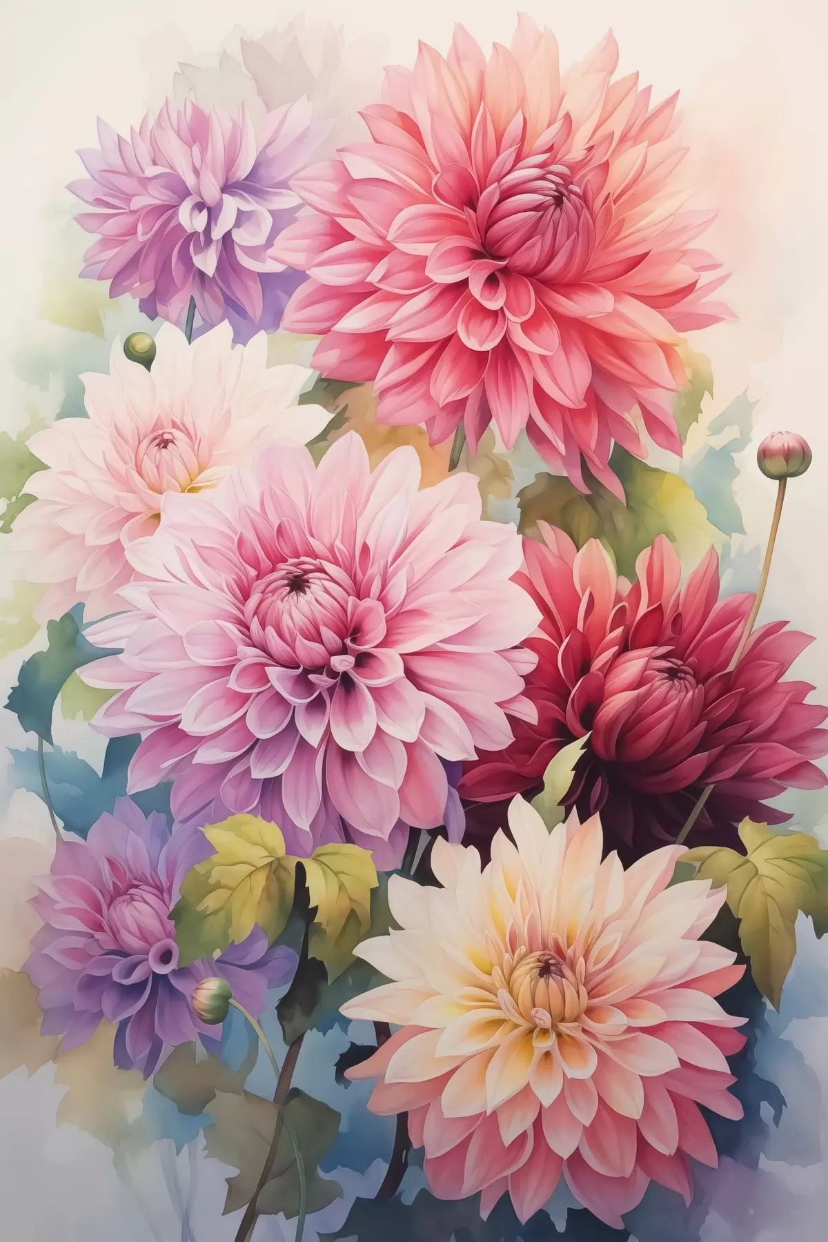 Poster Heledad krüsanteemid akvarellistiili imitatsioon Nr f42116
