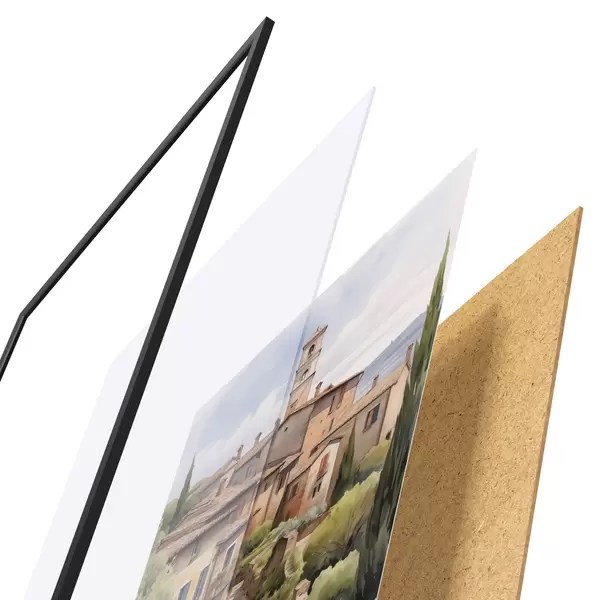 Plakat koosneb raamist, pleksiklaasist, trükitud pildist ja puitlaastplaadist alusplaadist. Tänu tagaküljel olevatele kinnitustele saab plakati kohe seinale riputada.