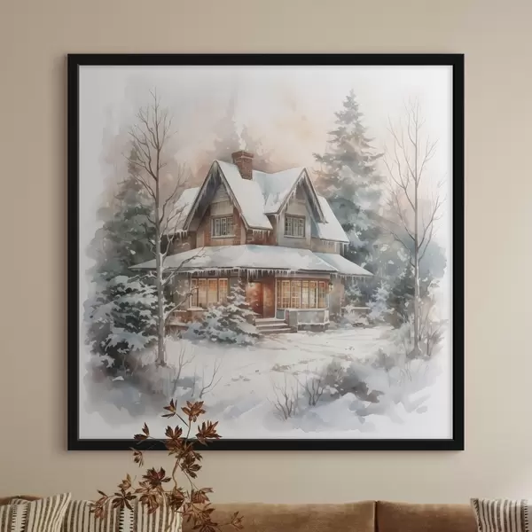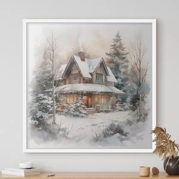 Poster Maja lumises metsas imitatsioon akvarellilt Nr f42137