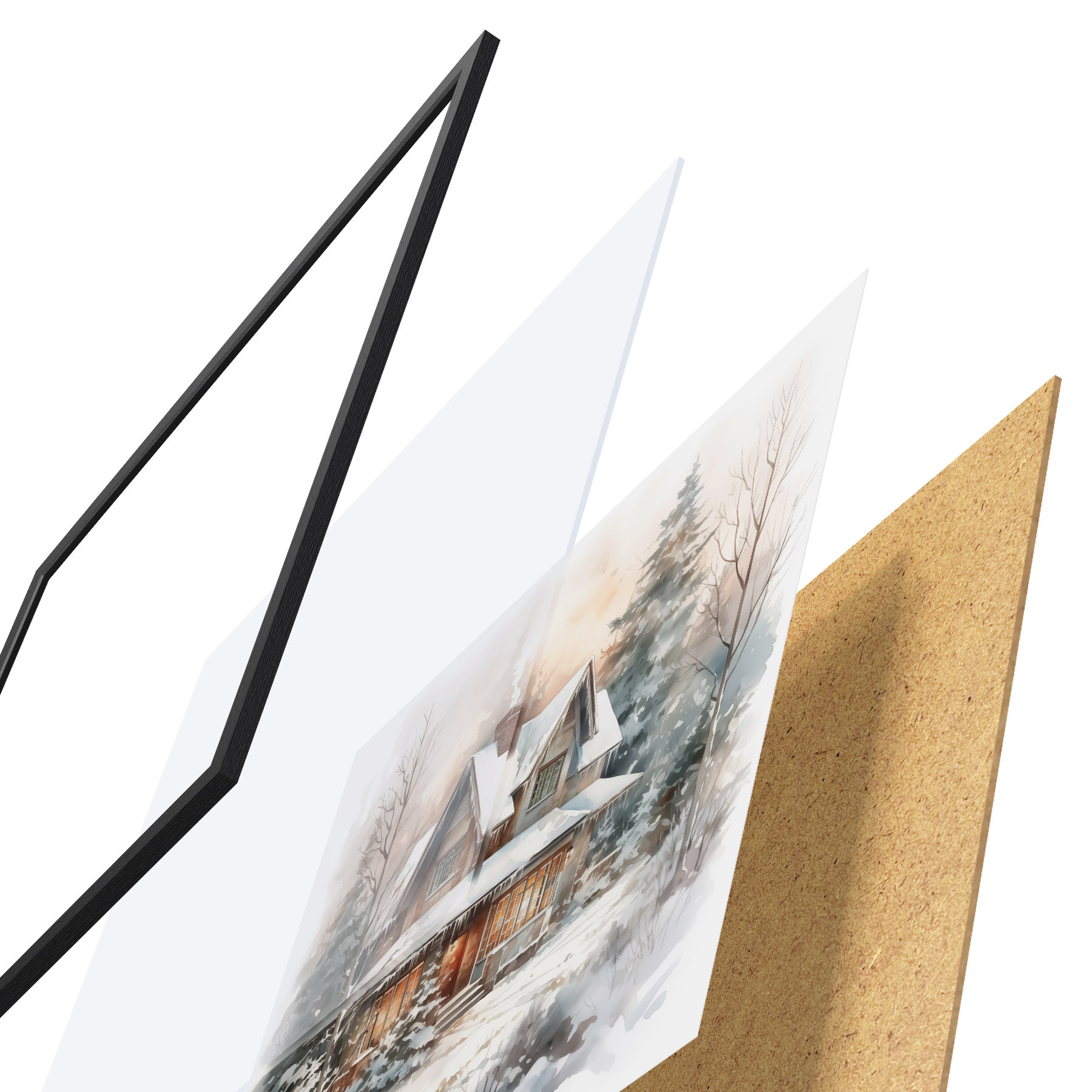 Plakat Maja lumises metsas imitatsioon akvarellilt f42137