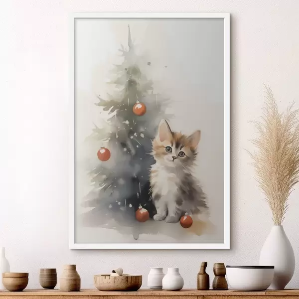 Poster Kassipoeg lähedal jõulupuu imitatsioon märg akvarellvärvi Nr f42140
