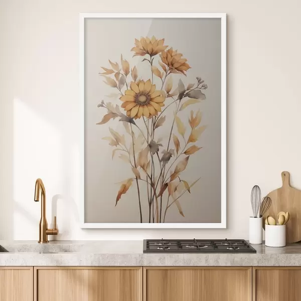Poster Oksad kollased lilled imitatsiooni maalimine akvarell värviga Nr f42142