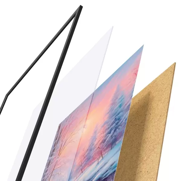 Plakat koosneb raamist, pleksiklaasist, trükitud pildist ja puitlaastplaadist alusplaadist. Tänu tagaküljel olevatele kinnitustele saab plakati kohe seinale riputada.