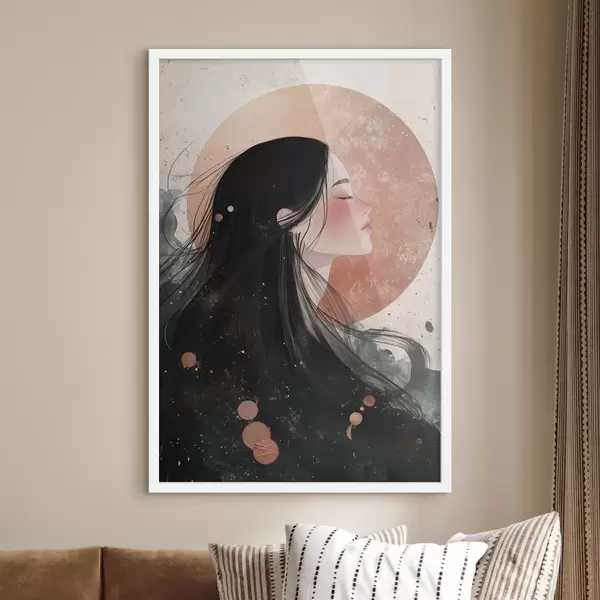 Poster Ilus tüdruk, idamaine stiil, päike, roosad värvid Nr f42195