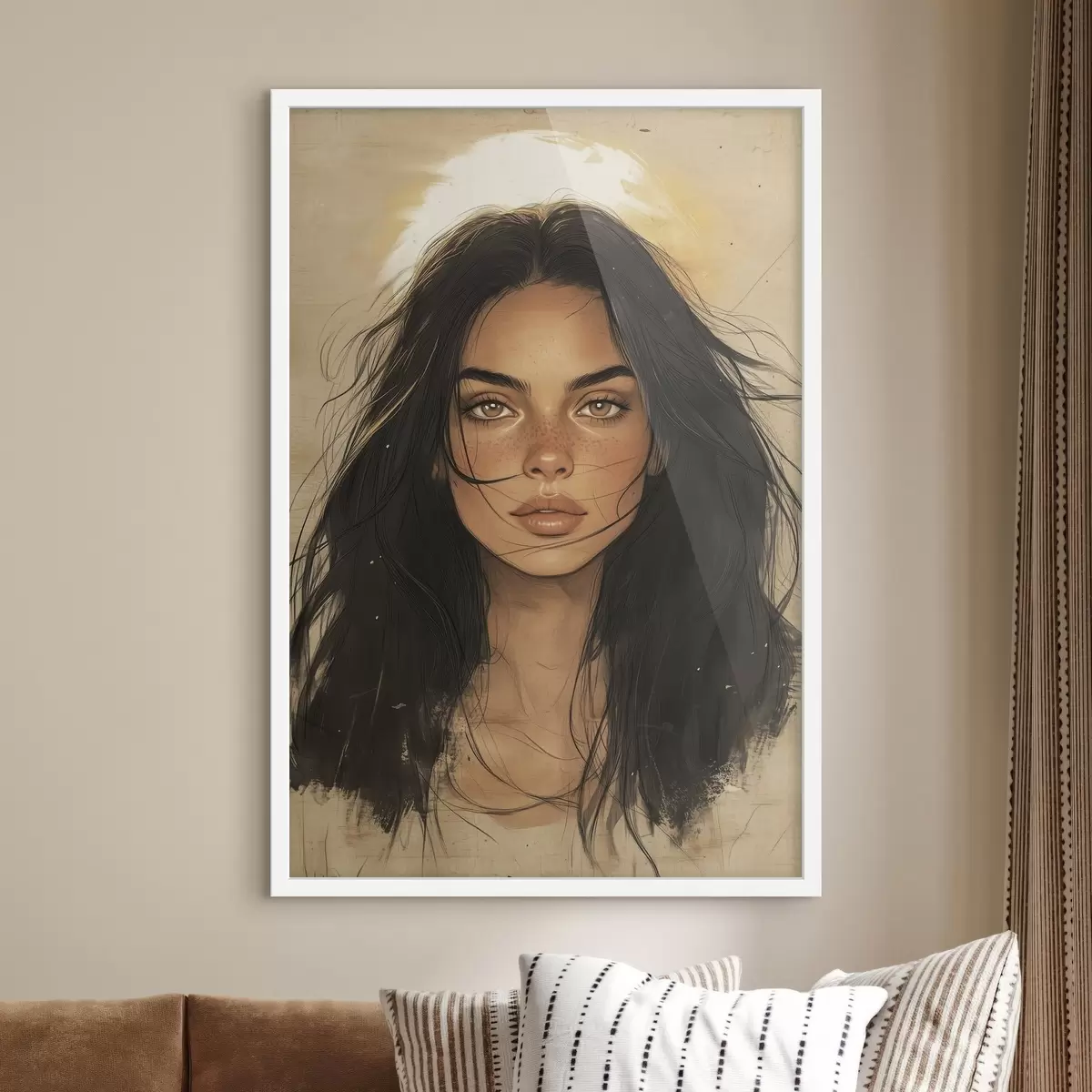 Plakat Naise portree, hõimu stiilis, beež värvid f42197
