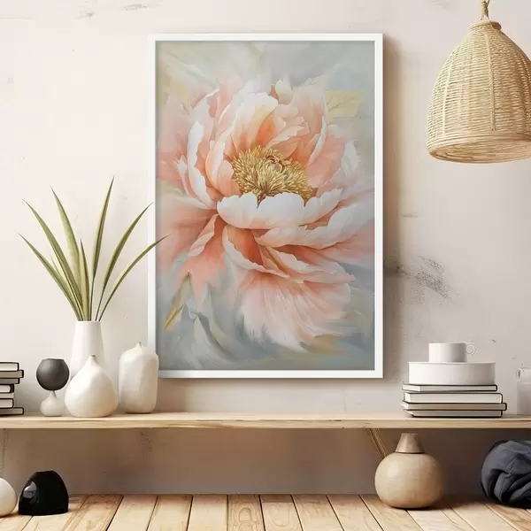 Plakat Akrüül stiilis pojengilill, roosa värvid, pintslitõmbed f42199