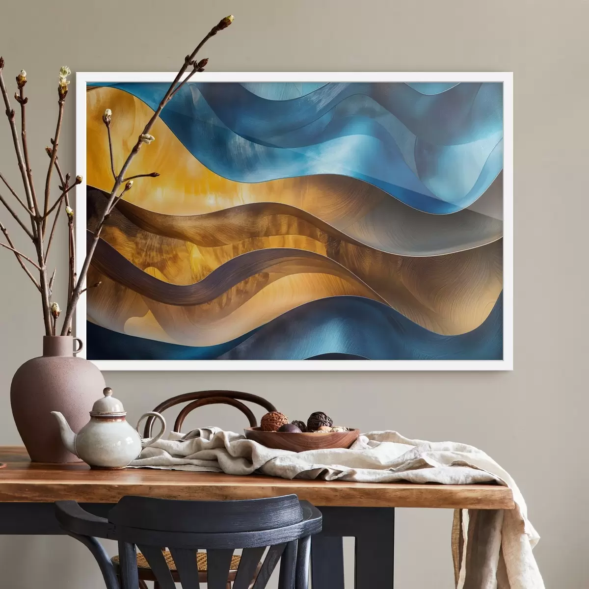 Poster Abstraktsed kaasaegse kunsti lainelised kujundid sinise, oranži ja pruuni toonides Nr f42224