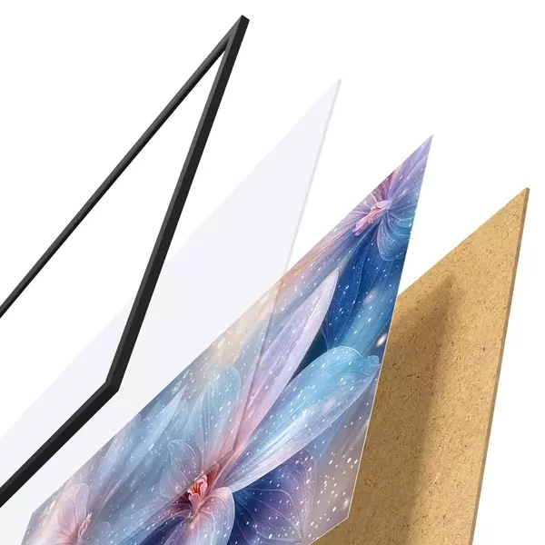 Plakat Elavat ja eeterlikku lillede pehmete pastelsete kroonlehtedega unenäolisel, tähelisel taustal f42231