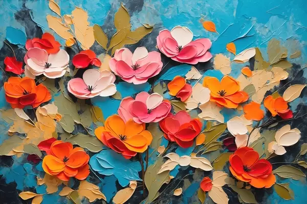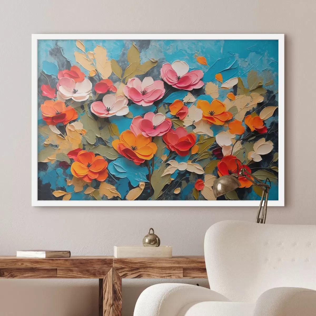 Poster Lilled ja lehed sinisel taustal Nr f42255