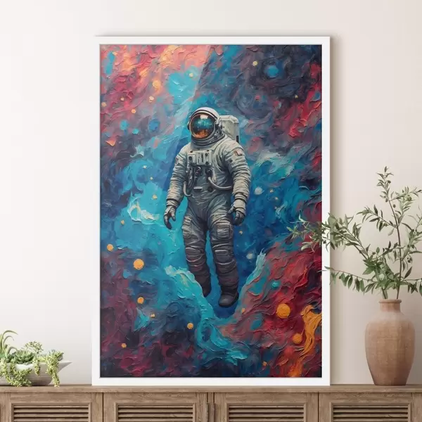 Plakat Astronaut abstraktsel kosmose taustal õlimaalide stiilis f42265
