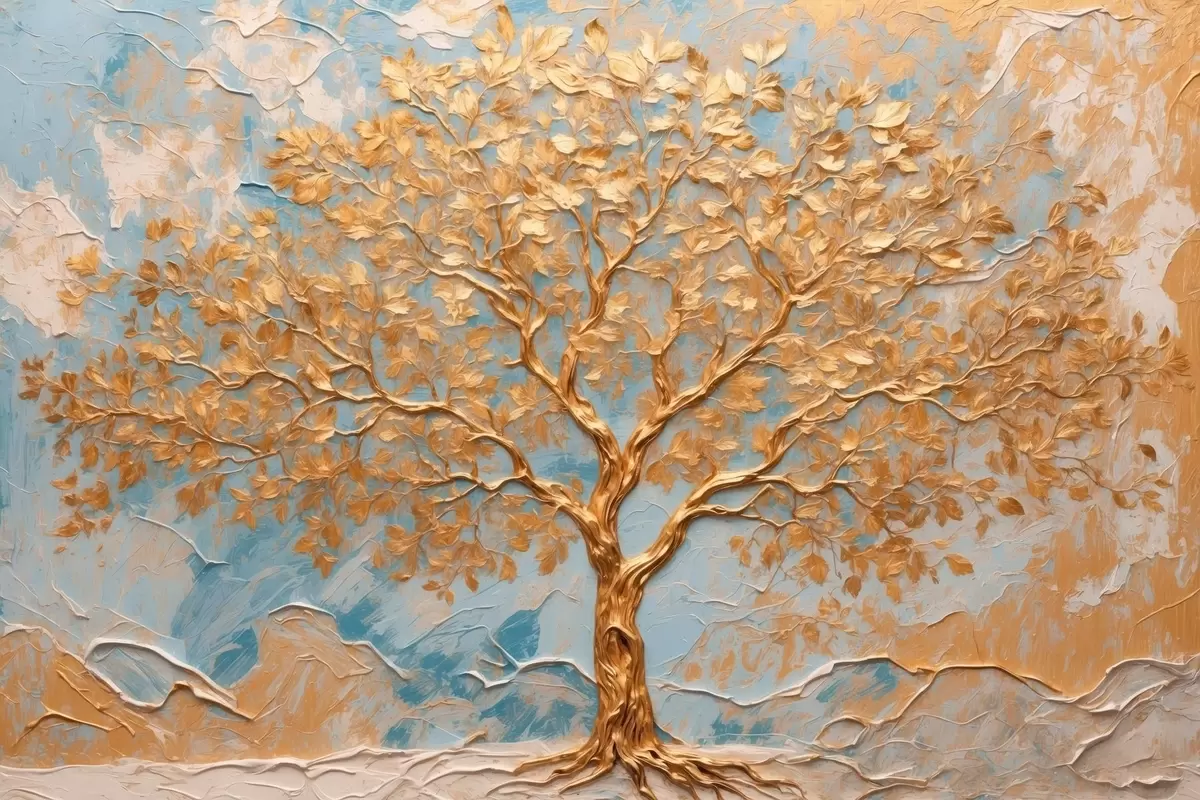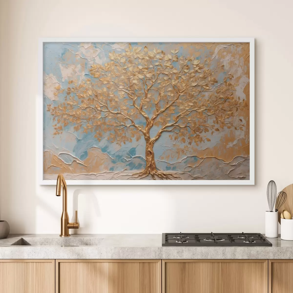 Plakat Kollane puu sini-valgelisel taustal f42266