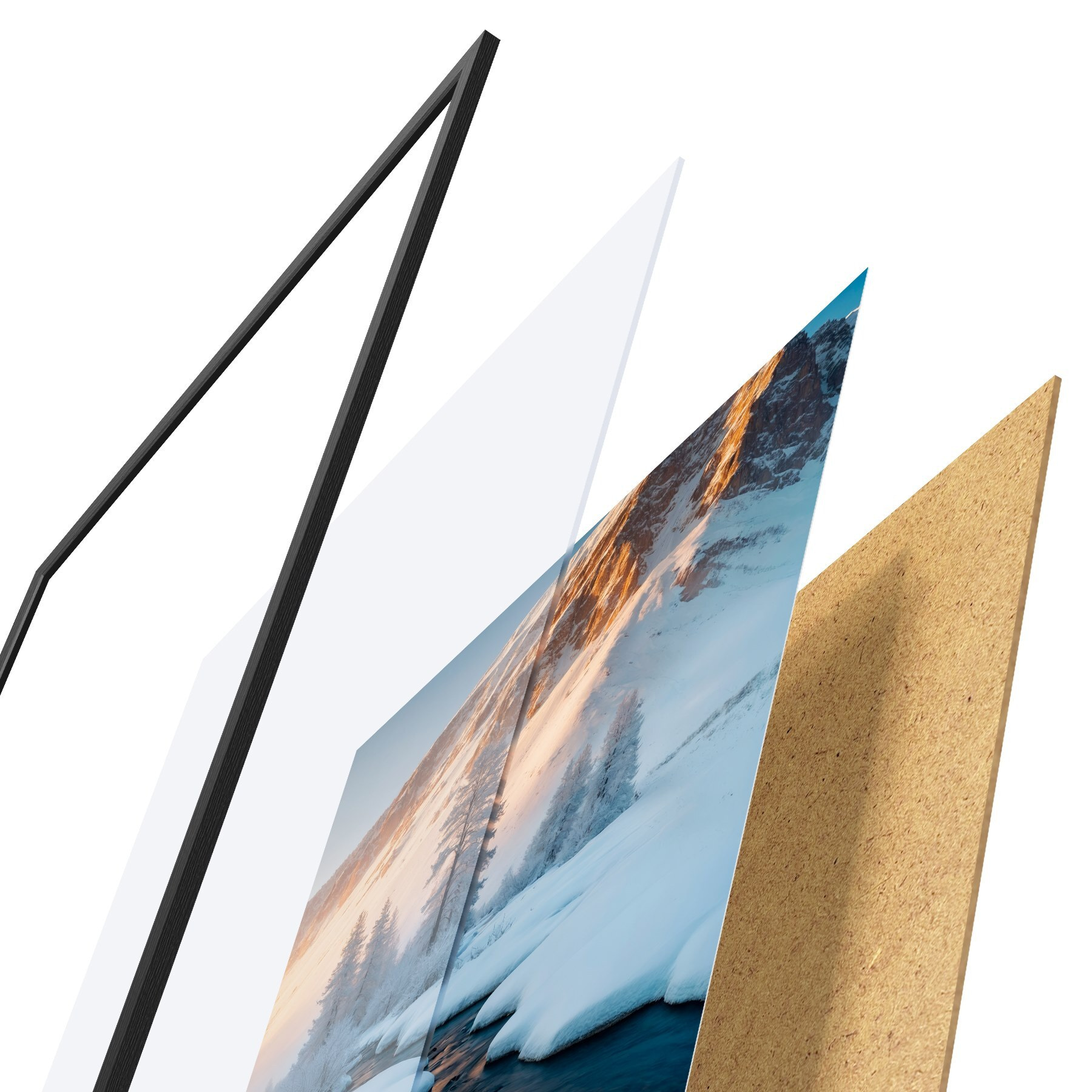 Plakat koosneb raamist, pleksiklaasist, trükitud pildist ja puitlaastplaadist alusplaadist. Tänu tagaküljel olevatele kinnitustele saab plakati kohe seinale riputada.