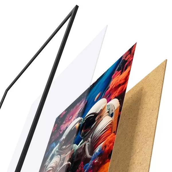 Plakat koosneb raamist, pleksiklaasist, trükitud pildist ja puitlaastplaadist alusplaadist. Tänu tagaküljel olevatele kinnitustele saab plakati kohe seinale riputada.