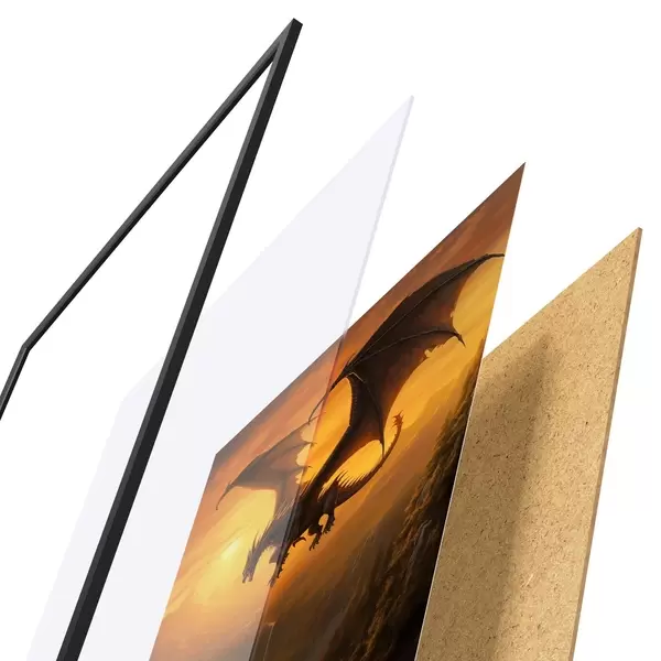 Plakat koosneb raamist, pleksiklaasist, trükitud pildist ja puitlaastplaadist alusplaadist. Tänu tagaküljel olevatele kinnitustele saab plakati kohe seinale riputada.