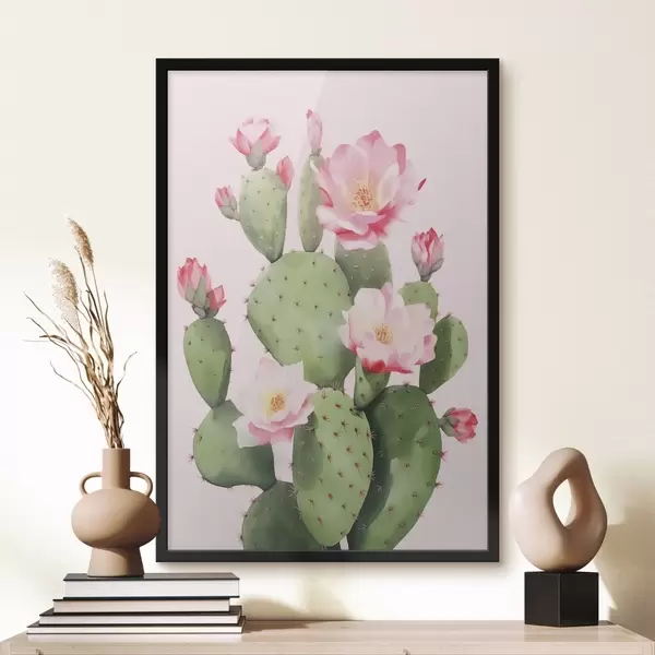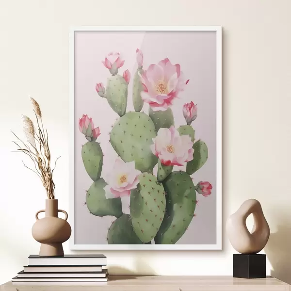 Plakat Kaktus ja roosad lilled f42313