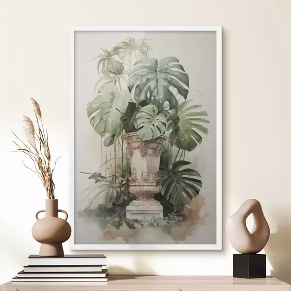 Plakat Troopiline monstera lehed veerus imitatsioon akvarellil f42351