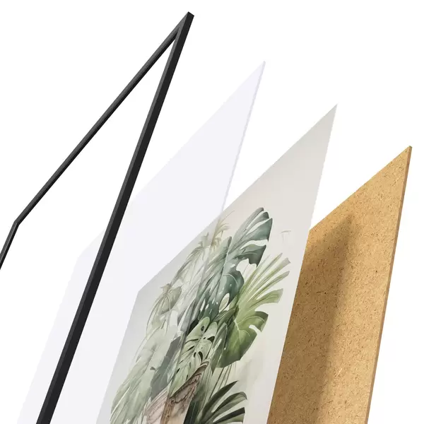 Plakat koosneb raamist, pleksiklaasist, trükitud pildist ja puitlaastplaadist alusplaadist. Tänu tagaküljel olevatele kinnitustele saab plakati kohe seinale riputada.
