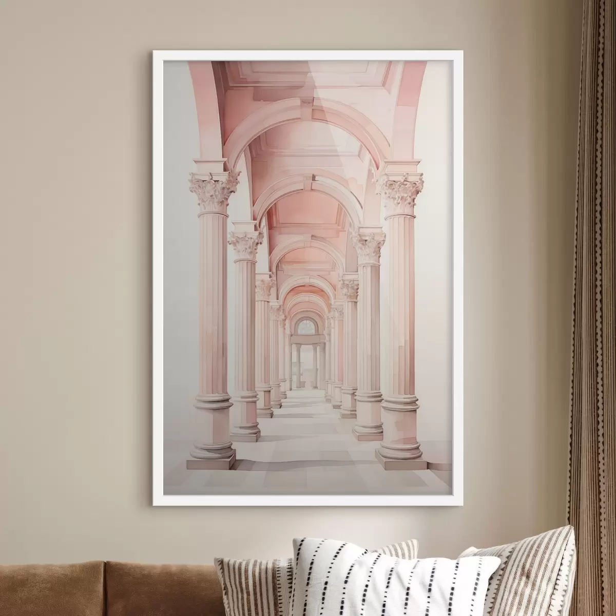 Plakat Arhitektuurne struktuur koos veergudega, mis imiteerib akvarellidega f42361