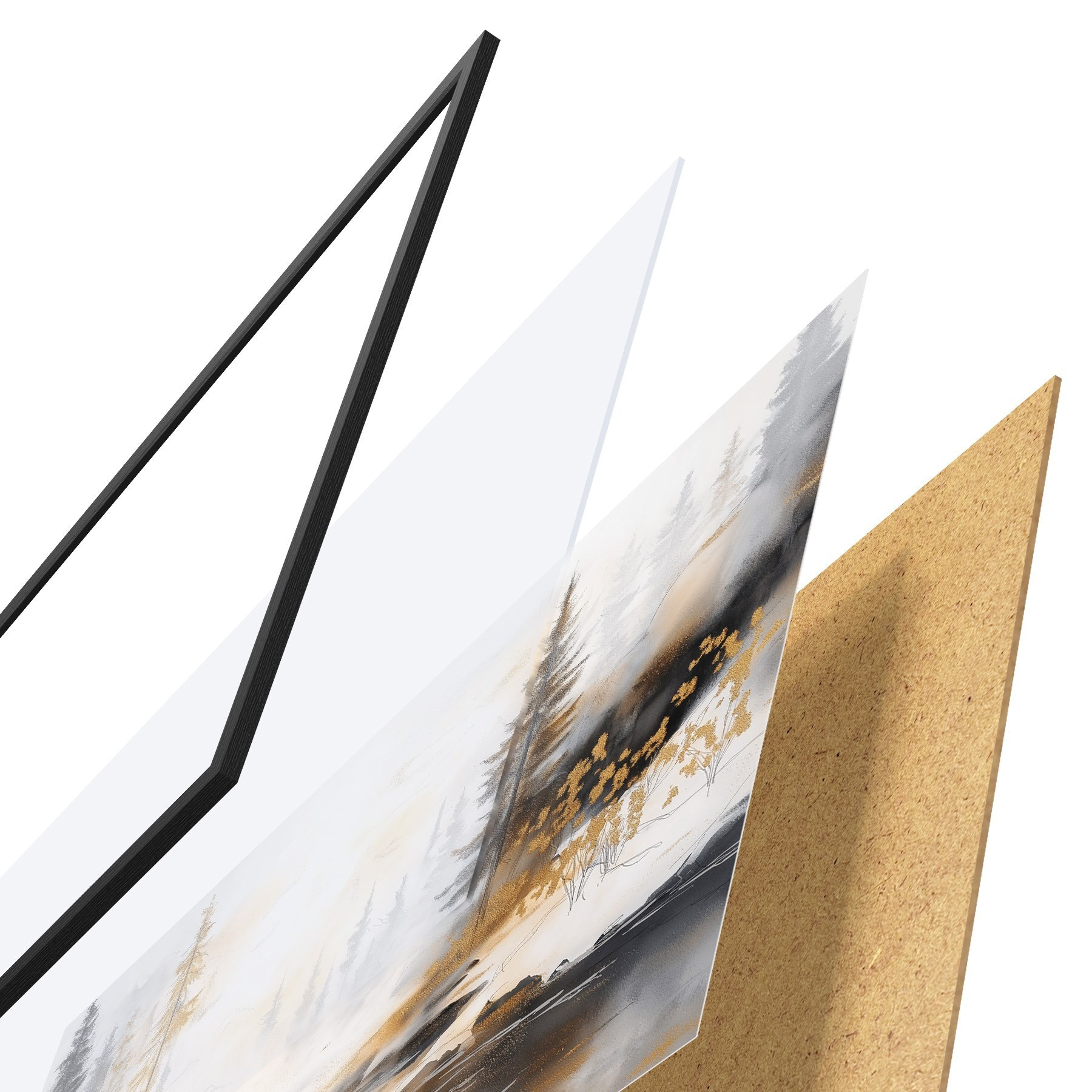 Plakat Loodusmaastik jõe, metsa ja mändidega, pehmed pastellvärvid f42375