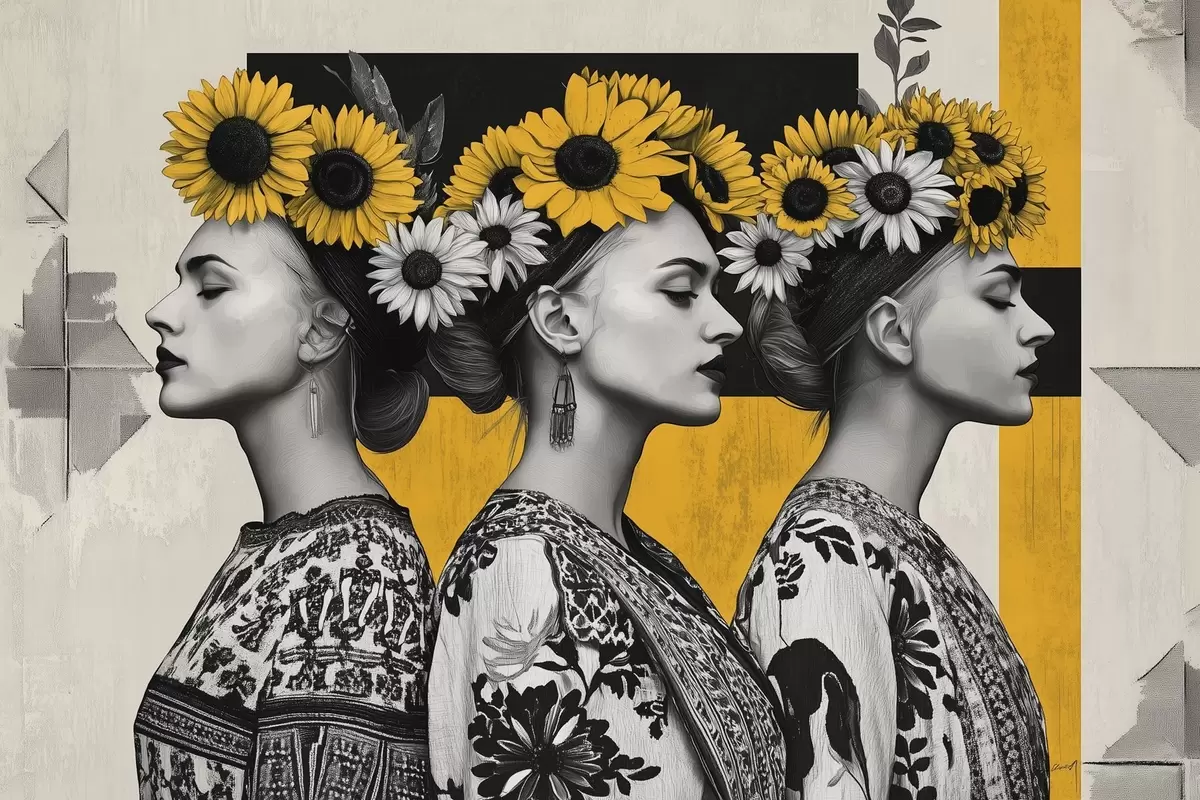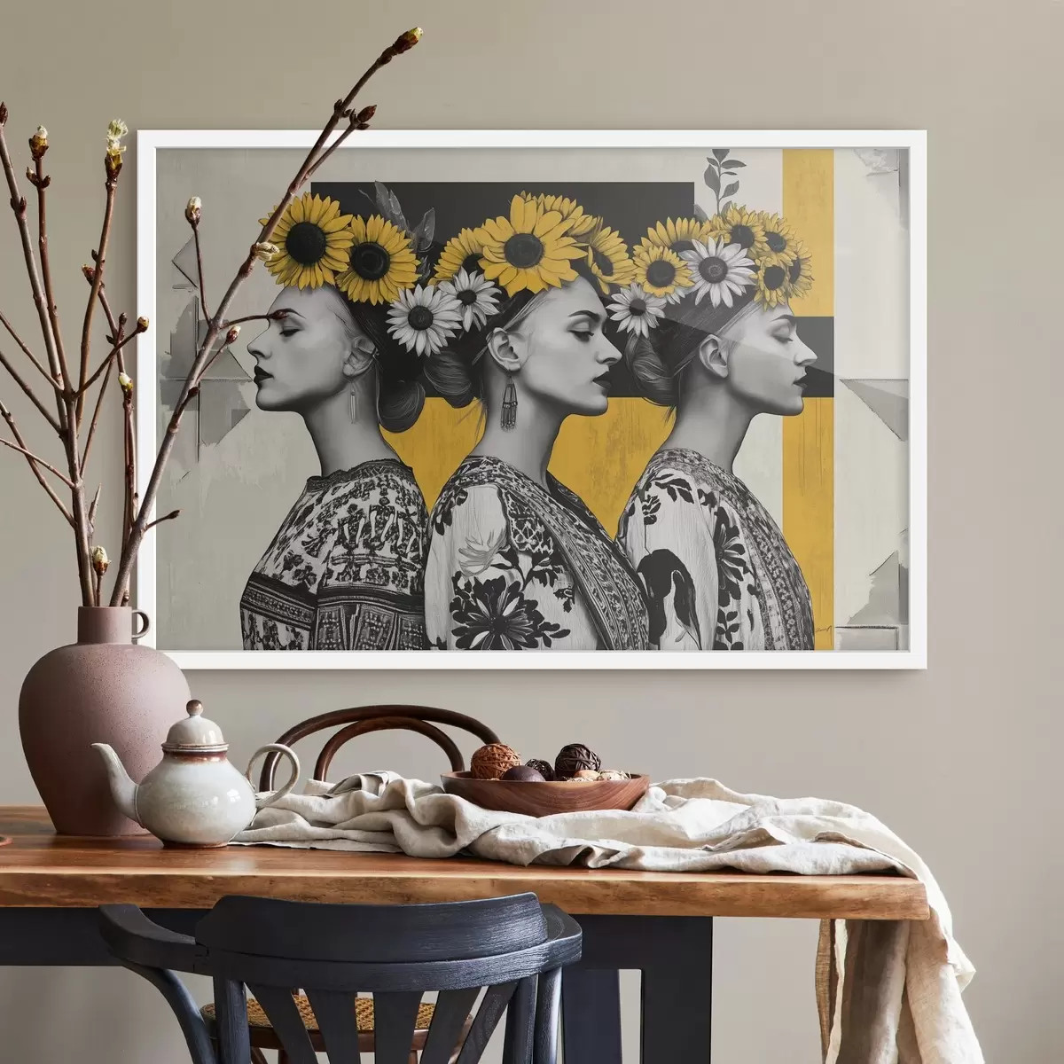 Poster Kaunid naised etnilise sulgudes päevalillevõtetega Nr f42378