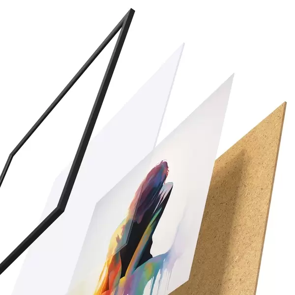 Plakat koosneb raamist, pleksiklaasist, trükitud pildist ja puitlaastplaadist alusplaadist. Tänu tagaküljel olevatele kinnitustele saab plakati kohe seinale riputada.
