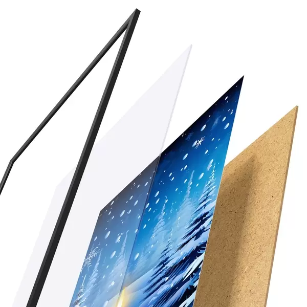 Plakat koosneb raamist, pleksiklaasist, trükitud pildist ja puitlaastplaadist alusplaadist. Tänu tagaküljel olevatele kinnitustele saab plakati kohe seinale riputada.
