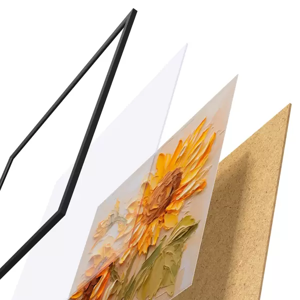 Plakat koosneb raamist, pleksiklaasist, trükitud pildist ja puitlaastplaadist alusplaadist. Tänu tagaküljel olevatele kinnitustele saab plakati kohe seinale riputada.