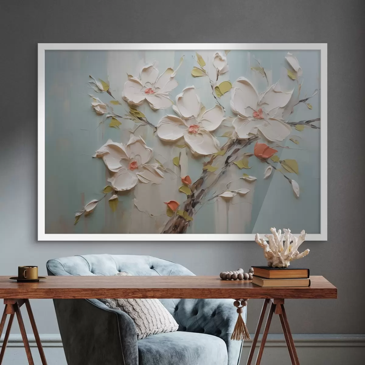 Plakat Valged lilled jäljendavad värvilööke f42417